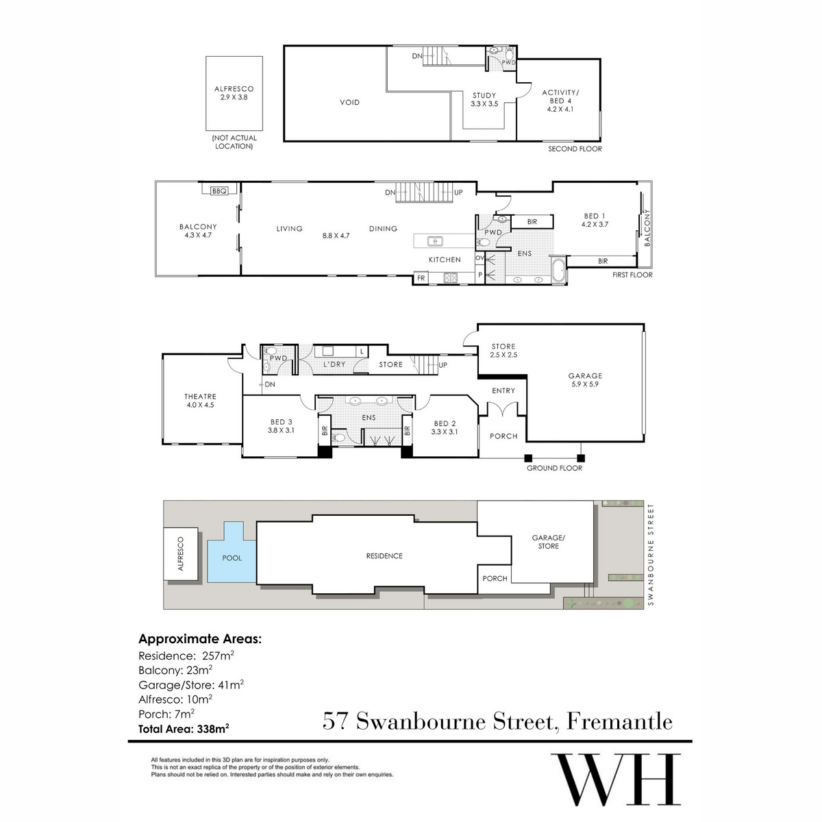Rising across three exquisitely designed levels, this is a home that embraces natural light, coastal breezes, and long ocean views above the rooftops of Fremantle. Elegant spaces favour a clean, minimalist palette, while the flexible layout works superbly well for family life – including multi-generational living. Opposite the vast green expanse of Stevens Reserve, you can stroll into town in just 10 minutes, watch ships sailing in the distance, and savour the golden hour of magical sunsets whether you’re entertaining poolside, or relaxing on the balcony with a drink in hand.