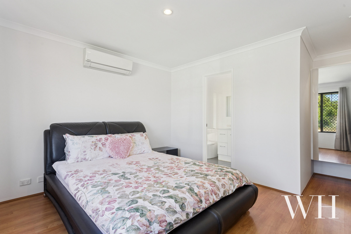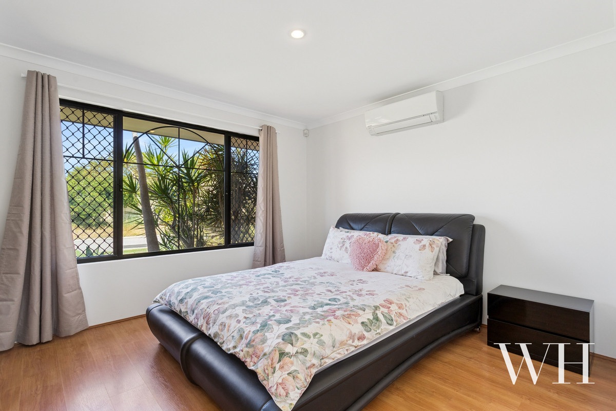 The privately positioned main bedroom includes a walk-in robe and ensuite, while the three additional bedrooms are fitted with robes and serviced by a family bathroom with separate bath and shower. Year-round comfort comes easy with split-system air conditioning.